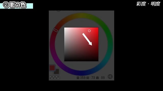 まずは、影を元の色の色相はそのままで、彩度を上げ、明度を下げた色にします。