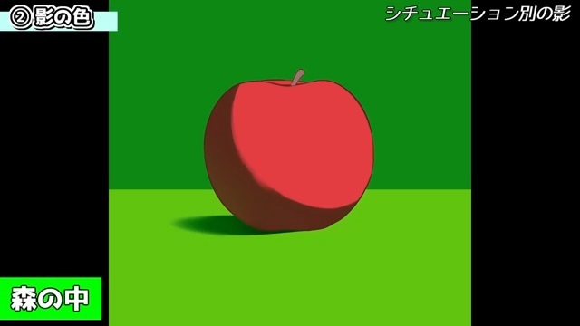 影部分の色相を周りの色に近づけるというだけでなく、影の濃さや暗さに関しても「影の色を周囲の色に合わせる」という理論が使えます。