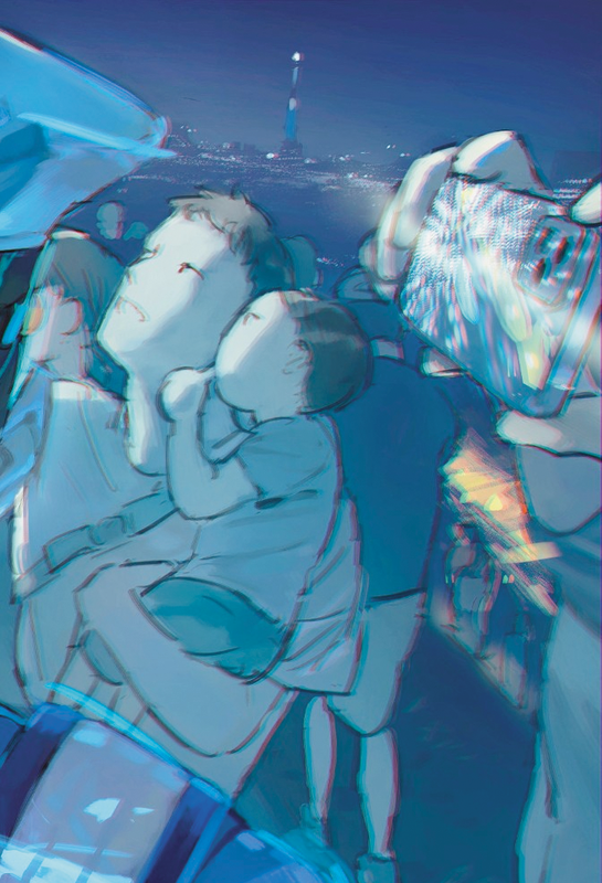そこから、「華やかな花火大会の中で異質な2人だけの緊迫した空間」というコンセプトを思いつきました。イラストの中に漂う独特な緊張感が見る人にも自然に伝わるよう構図を工夫しています。
